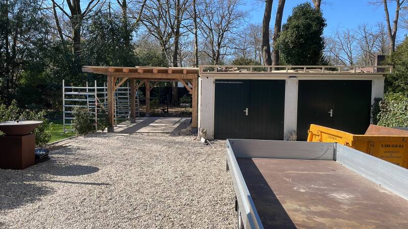 Afgelopen tijd hebben we gewerkt aan de wens van een klant waarbij een veranda en dubbelele garage moesten worden aangepast. We mochten een mooie buitenkeuken maken en een toilet.